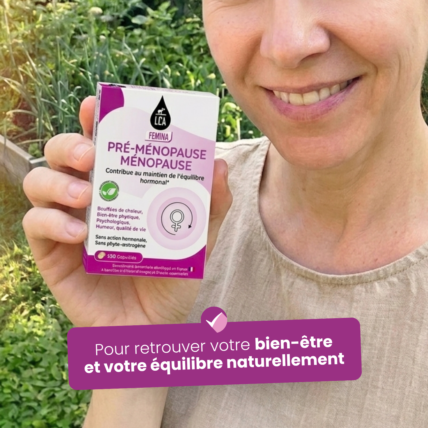 LCA FEMINA Pré-ménopause & Ménopause a été formulé pour accompagner les femmes durant les périodes de pré-ménopause et de ménopause, étapes naturelles pouvant s’accompagner de variations physiques et émotionnelles.